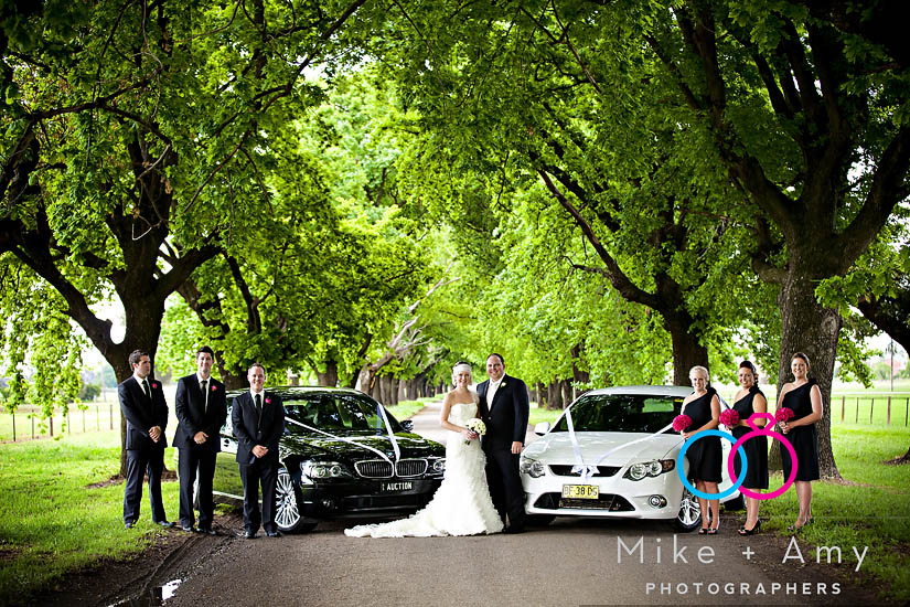 After all the hugs and kisses, family photos,etc we headed to King George Ave in Tamworth for the group and car photos. King George Ave is a staple for Tamworth wedding photography, and it’s not hard to see why. The lighting under those big trees lining the road is just incredible and their is so much room to work with there! A kind passerby opened their property to us for some photos as well so with just Jaye and Tim we headed their also.