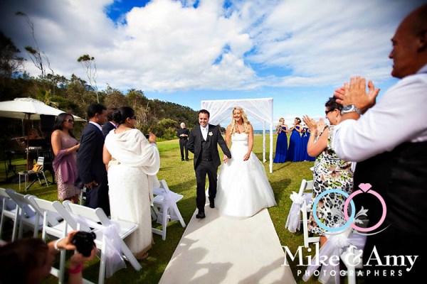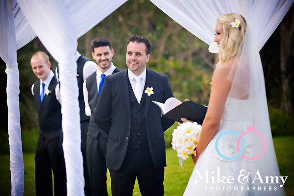 The ceremony was held on the lawns at Aanuka. Kara and Mike had arranged for a celebrant to travel up from Sydney to perform the ceremony. Forgive me please for forgetting his name, he did an amazing job. Kara and Mike’s vows were really beautiful. They personalised them …. I nearly cried…. If I were a guest I think I would have…. Thankfully I had my camera to keep me distracted. LOL. Kara and Mike’s friends played their instruments as Kara walked down the aisle with her Mum and Dad. It was a very beautiful moment watching Kara walk down the aisle and seeing Mike’s reaction. Priceless moments.