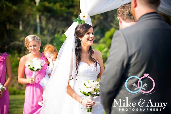 The ceremony was held in the rainforest at Bonville Golf Resort! The rainforest is such an amazing place to be married! The tall trees and the soft light make for such a romantic location.